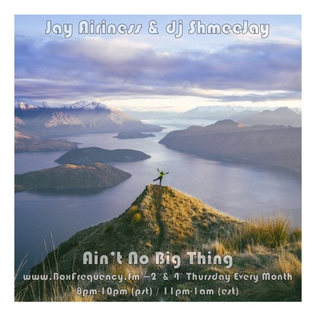 dj ShmeeJay‘s Ain’t No Big Thing radio show, live on the 2nd and 4th Thursday of every month from 8pm – 10pm (PST) / 11pm – 1am (EST) on BoxFrequency.fm, and with a podcast syndicated on iTunes.