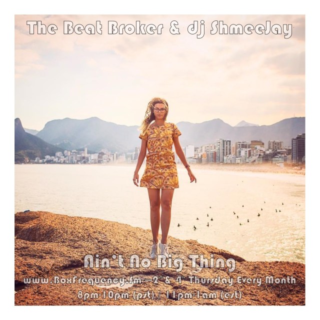 dj ShmeeJay‘s Ain’t No Big Thing radio show, live on the 2nd and 4th Thursday of every month from 8pm – 10pm (PST) / 11pm – 1am (EST) on BoxFrequency.fm, and with a podcast syndicated on iTunes.