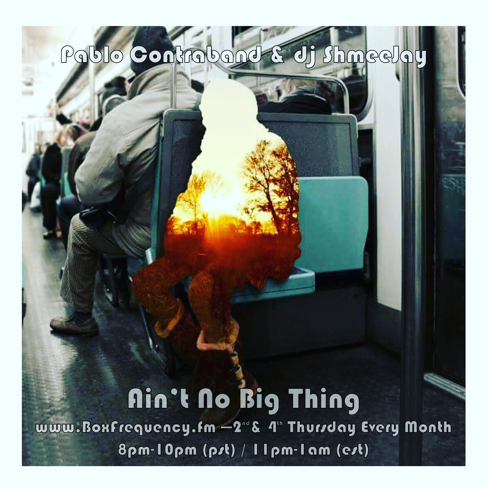 dj ShmeeJay‘s Ain’t No Big Thing radio show, live on the 2nd and 4th Thursday of every month from 8pm – 10pm (PST) / 11pm – 1am (EST) on BoxFrequency.fm, and with a podcast syndicated on iTunes.